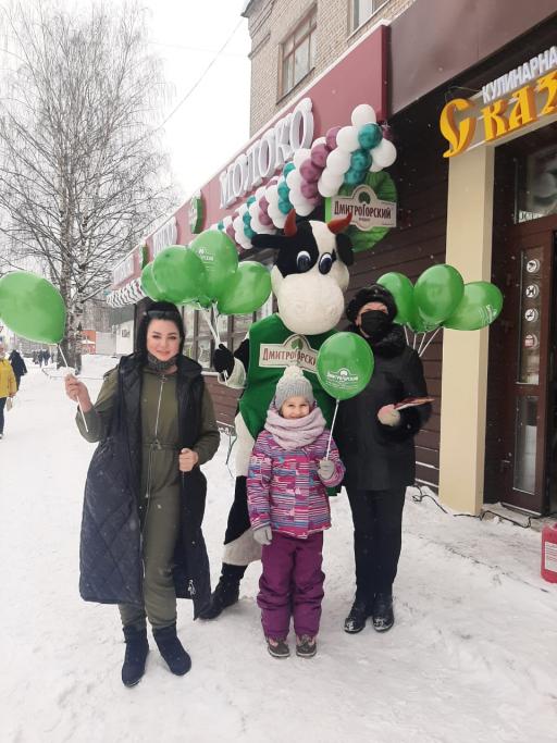 По доброй традиции открытие нового магазина прошло в праздничной атмосфере с воздушными шарами фирменной расцветки, веселым талисманом розничной сети Коровой – традиционным объектом для забавных селфи, конечно же, вкусными комплиментами первым покупателям. Кроме того, все желающие могли оформить бонусную карту лояльности, заполнив анкету и вступив в клуб «Дмитрогорский продукт».