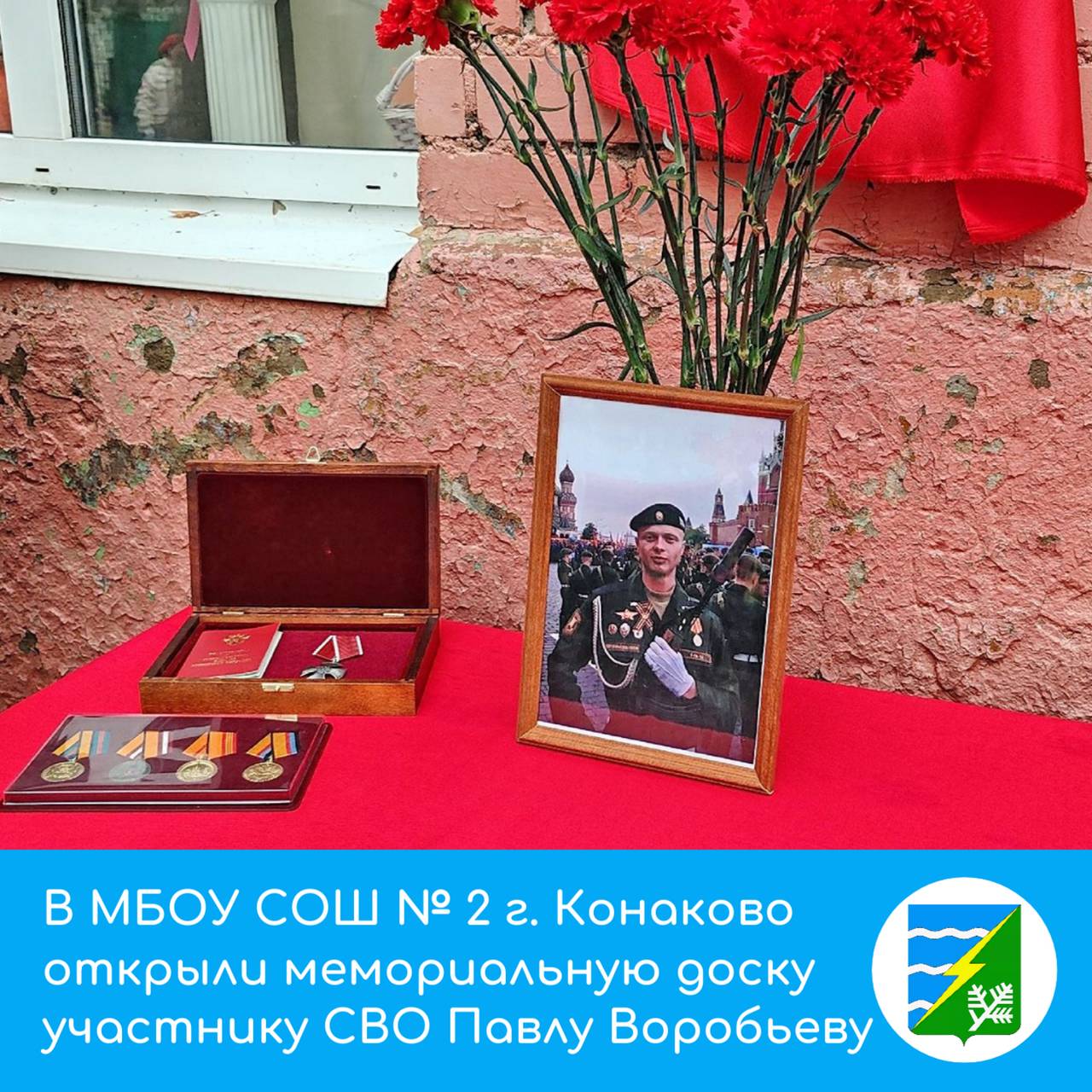В средней школе № 2 г. Конаково 9 октября открыли мемориальную доску участнику СВО Павлу Воробьеву.