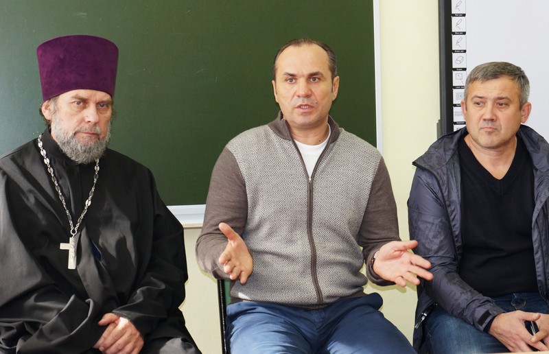 Открывая встречу, отец Виктор пригласил всех желающих в храм, а также сообщил, что всех приехавших детей ждут в творческом объединении «Новая Корчева». Все церковные обряды и таинства для приехавших из Украины (если кто-то, например, решить покреститься) будут совершенно бесплатны, отметил отец Виктор. После чего он раздал собравшимся иконки Сергия Радонежского, который является покровителем учащихся.