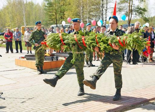 Траурный митинг завершился возложением цветов к мемориалу. После этого воспитанники военно-патриотического центра «Звезда» показали собравшимся собственную реконструкцию боя у деревни Рябинки.