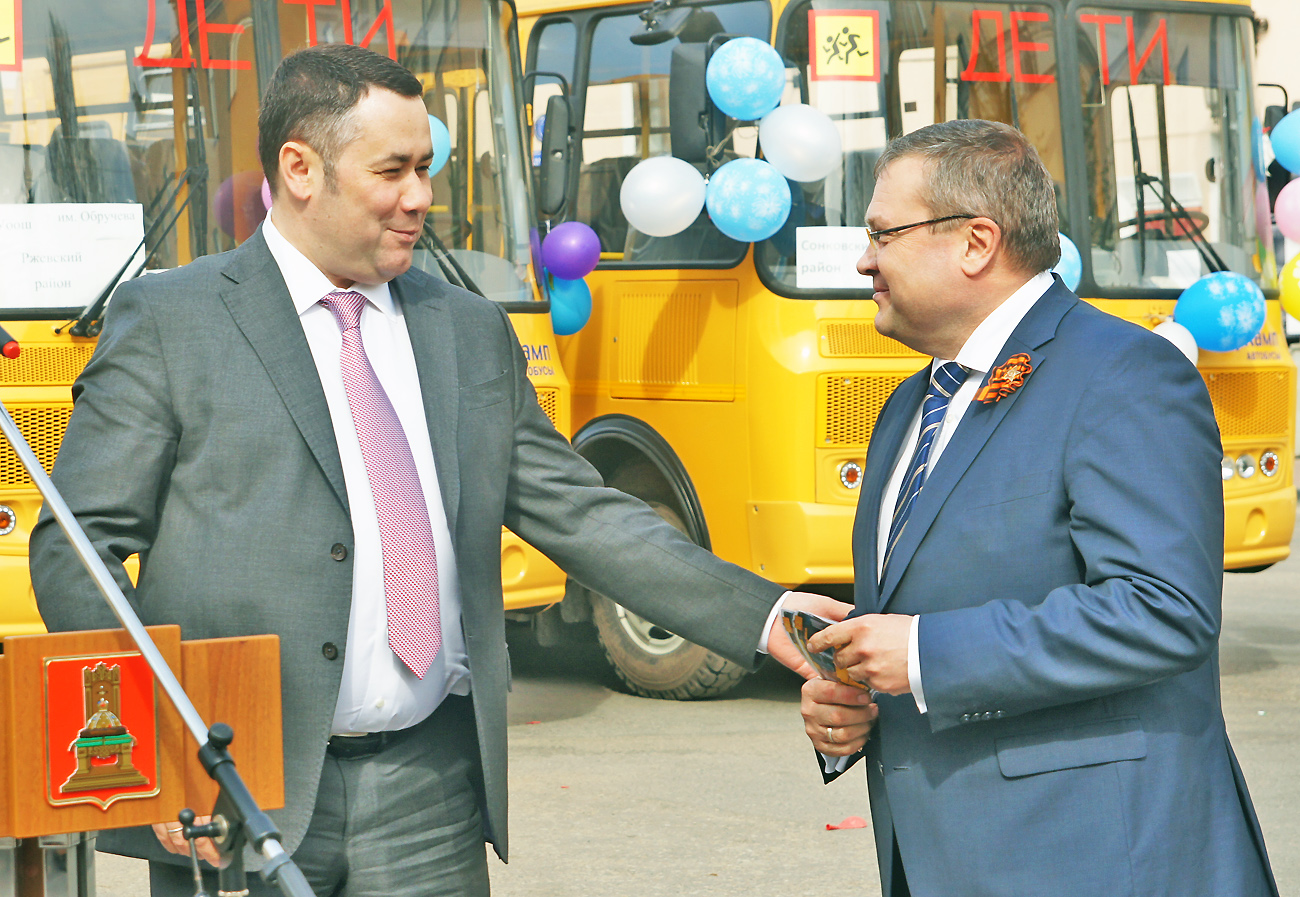Об этом сообщает официальная пресс-служба Правительства Тверской области. Школьный автопарк Тверской области пополнился 24 новыми автобусами, которые 4 мая были торжественно переданы школам из 16-ти районов региона. В церемонии передачи новых автобусов принимали участие Глава администрации района Олег Лобановский, его заместитель по социальной политике Аггюль Бородина и начальник управления образования Ольга Булгакова.