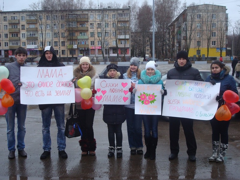 25 ноября 2011 года Молодёжный Совет при главе Конаковского р-на провел очередную акцию приуроченную к Дню матери! члены молодежного совета поздравили матерей, многие из которых гуляли и даже не подозревали о своем праздничном дне.