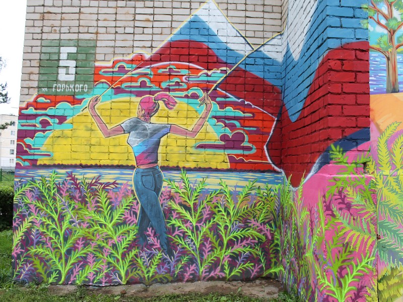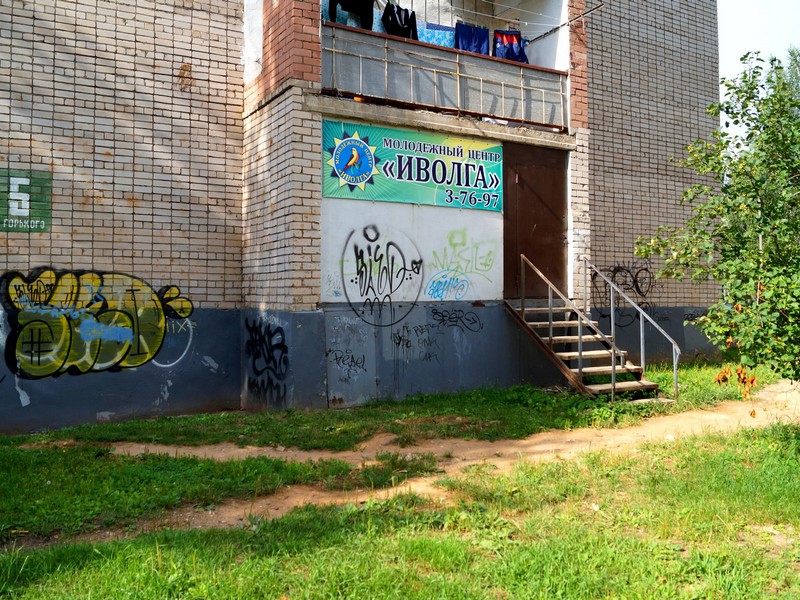 В Молодежном Центре «Иволга» закончено оформление входа в помещение центра. Роспись фасадных стен на безвозмездных условиях осуществил молодой художник Илья Викулин.