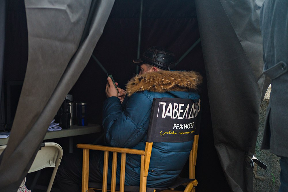 Сцену перехода снимали более 10 раз: сперва общие планы, затем крупные, затем кто-то влезал в кадр в современной одежде и приходилось перенимать дубль.