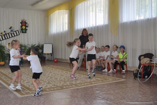 В физкультурном досуге по ПДД, команды старшей группы «Пешеходы» и «Светофор» соревновались между собой в знаниях дорожных знаков, правилах для велосипедистов и помогали Незнайке выучить их, а средняя группа активно поддерживала участников. Конкурсы с жезлом, светофором, светоотражателями под музыкальное сопровождение понравились ребятам. Инспектор рассказала ребятам о службе ГИБДД и повторила самые важные правила безопасности для пешеходов и пассажиров.