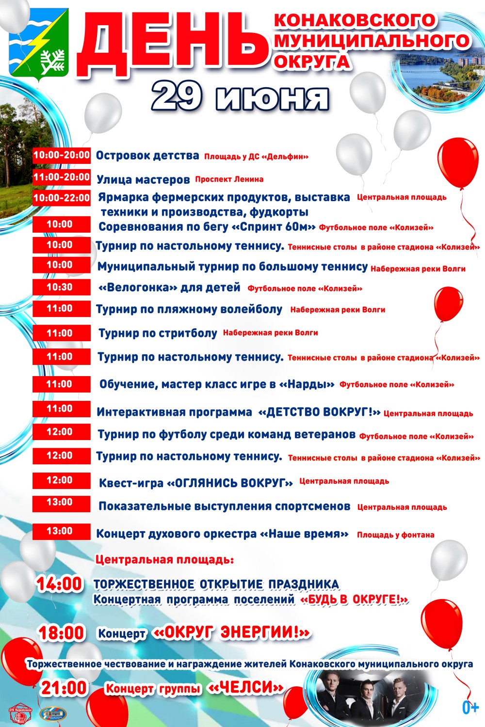 Приглашаем вас 29 июня 2024 года на праздничные мероприятия, посвященные Дню Конаковского муниципального округа.
