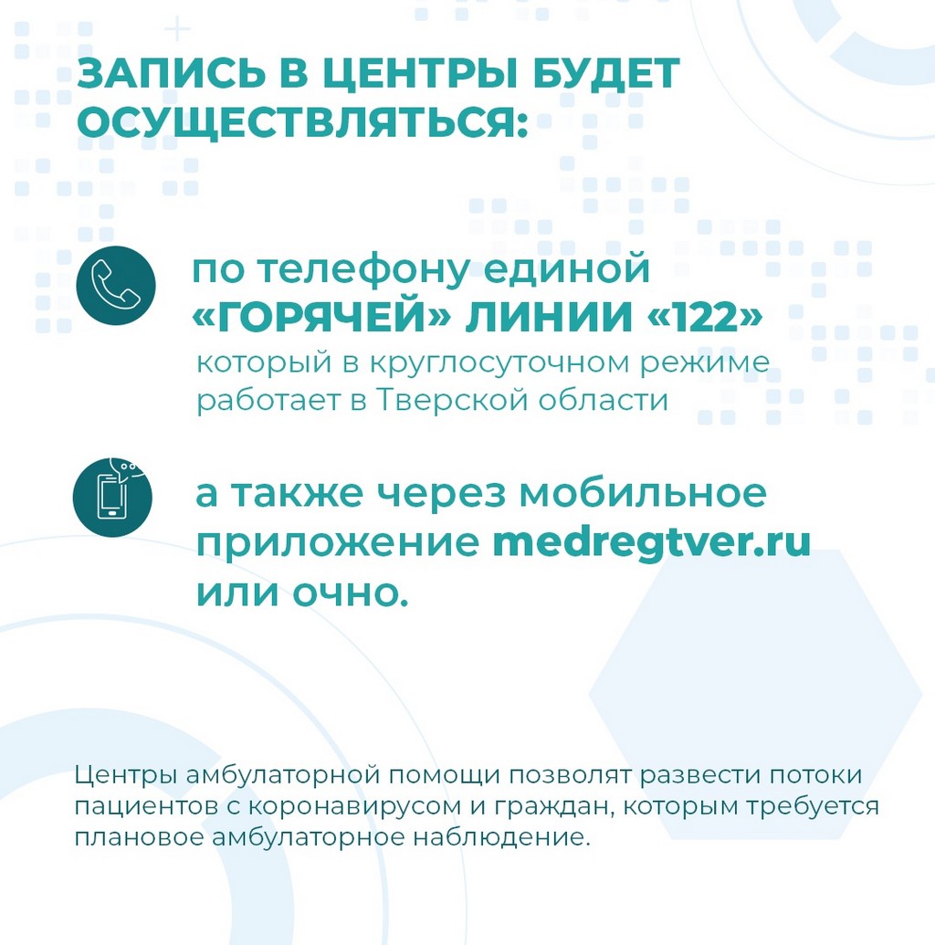 Записаться на прием можно будет по телефону единой «горячей» линии «122», через мобильное приложение medregtver.ru или очно.