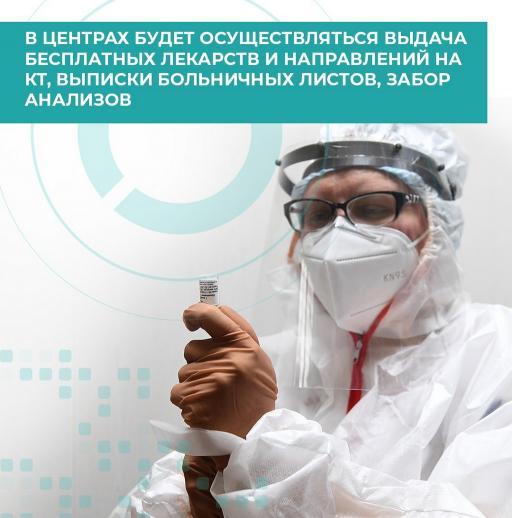 В таких центрах будут выдавать бесплатные лекарства от коронавируса, выписывать направления на КТ, давать больничные и брать анализы.