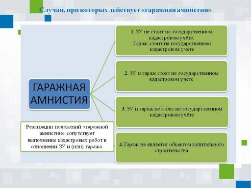 Можно выделить 4 различных случая, при которых возможно оформление прав на объекты гаражного назначения и земельные участки, на которых они расположены, в упрощённом порядке: