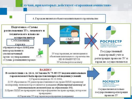 Положениями Закона о «гаражной амнистии» установлено, что земельные участки под гаражами, не являющимися объектами капитального строительства, в собственность граждан ОМСУ не предоставляются, следовательно, права на такие участки не регистрируются.