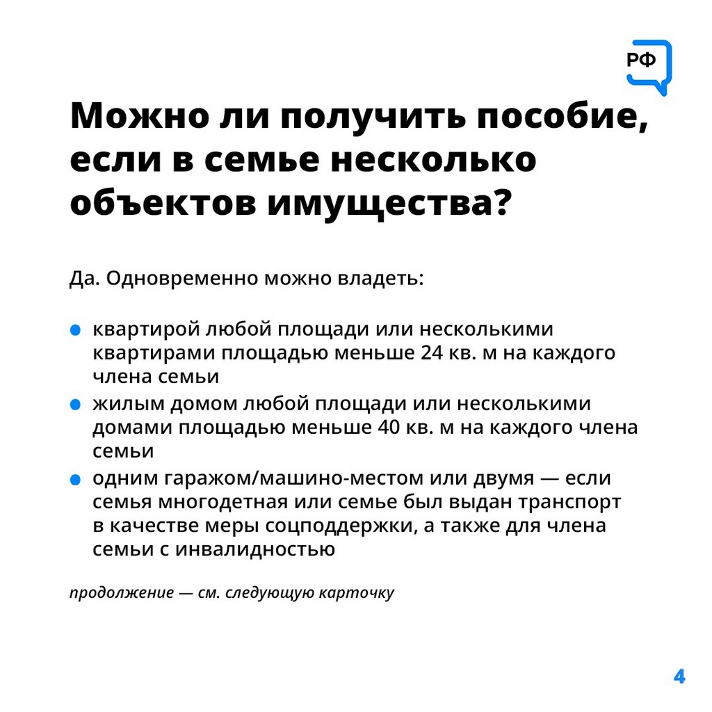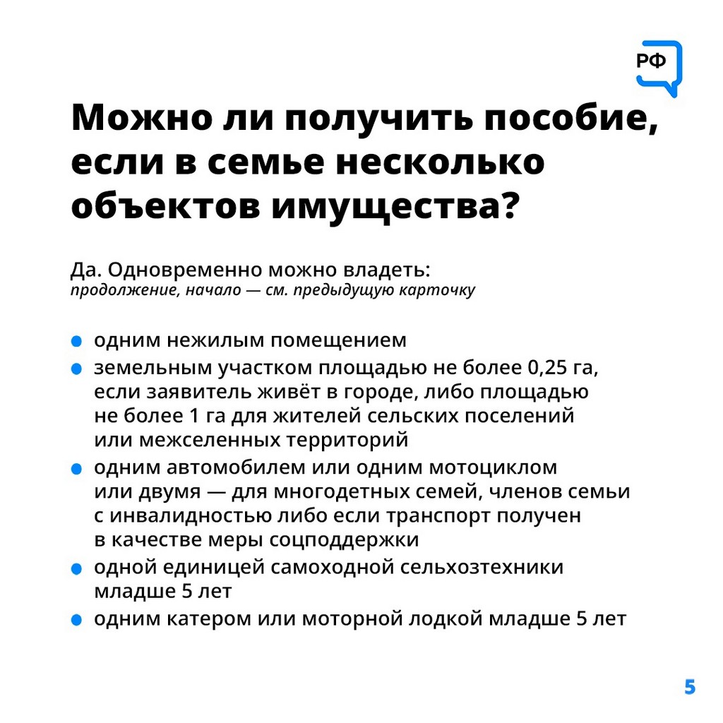 При этом семья может иметь несколько видов имущества одновременно и получать пособие.