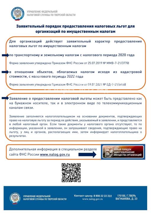 Заявительный порядок предоставления налоговых льгот для организаций по имущественным налогам.