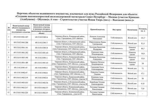 Информируем жителей Конаковского района об изъятии земельных участков и объектов недвижимого имущества для нужд Российской Федерации для объекта: «Создание высокоскоростной железнодорожной магистрали Санкт-Петербург — Москва (участок Крюково (Алабушево) - Обухово)». 6 этап - Строительство участка Новая Тверь (вкл.) - Высоково (искл.)».