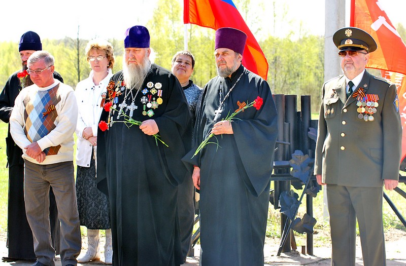 Траурный митинг завершился возложением цветов к мемориалу. После этого воспитанники военно-патриотического центра «Звезда» показали собравшимся собственную реконструкцию боя у деревни Рябинки.