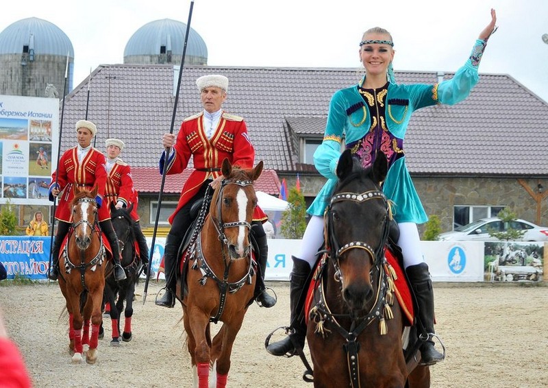 Зрителям в КСК было на что посмотреть – красивые лошади под музыку легко преодолевали сложнейшие барьеры. Особенное внимание вызвало выступление каскадёров. Всадники, наряженные в казацкие одежды, показали чудеса джигитовки: стрельбу по цели на ходу из пистолета, лука, мастерское владение пиками, саблями, хлыстами.