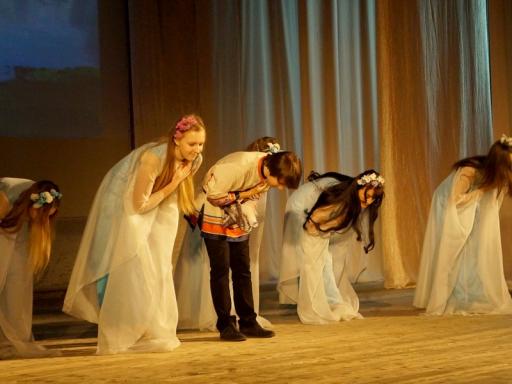 Детский музыкальный театр «Лукоморье» под управлением Елены Анисимовой представил свою версию сказки Гоголя «Майская ночь, или Утопленница». Замечательный танцевальный номер принес центру «Новая Корчева», к которому относится «Лукоморье», заслуженный приз за лучшую хореографическую постановку. Ученики школы представили сцену из комедии Дениса Фонвизина «Недоросль» - жюри отметило этот театр призом за лучшие костюмы.