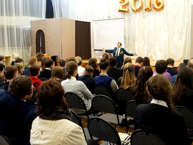 О жизни в блокадном Ленинграде, о знаменитых 125 граммах блокадного хлеба молодым людям рассказали те, кто «учился, не смотря ни на что», и те, кому посчастливилось выжить, почетные гости – дети блокадного Ленинграда: Инна Владимировна Тарасенко и Нина Семеновна Макарихина. Каждая из них рассказала ребятам о своём взрослом детстве во время блокады и о послевоенной жизни. Все самое страшное - «Дорога жизни», 125 блокадных грамм хлеба, «опасная сторона улицы», трупы на улицах, случаи людоедства - теперь это все в прошлом. Память обо всех жертвах той войны, о 850 000 погибших людей во время блокады, все присутствующие почтили минутой молчания.